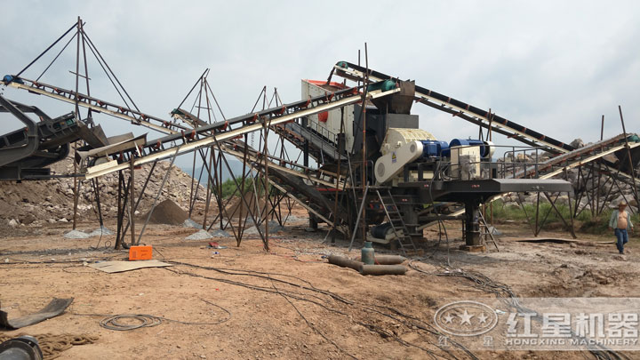 移動(dòng)式建筑垃圾破碎機(jī)現(xiàn)場(chǎng)實(shí)拍圖