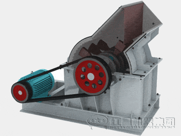 錘式破碎機的主要工作部件為帶有錘子(又稱錘頭)的轉子。轉子由主軸、圓盤、銷軸和錘子組成。電動機帶動轉子在破碎腔內高速旋轉。物料自上部給料口給入機內,受高速運動的錘子的打擊、沖擊、剪切、研磨作用而粉碎。在轉子下部,設有篩板、粉碎物料中小于篩孔尺寸的粒級 通過篩板排出,大于篩孔尺寸的粗粒級 阻留在篩板上繼續受到錘子的打擊和研磨, 后通過篩板排出機外。